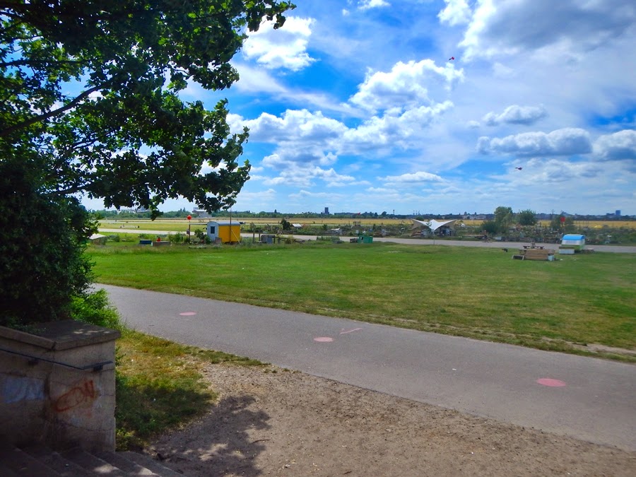 Vom U-Bhf Boddinstraße mitten in Neukölln lief ich ca. 10 Min. und war dann auf dem riesigen Gelände des Tempelhofer Felds, der 'Tempelhofer Freiheit'.